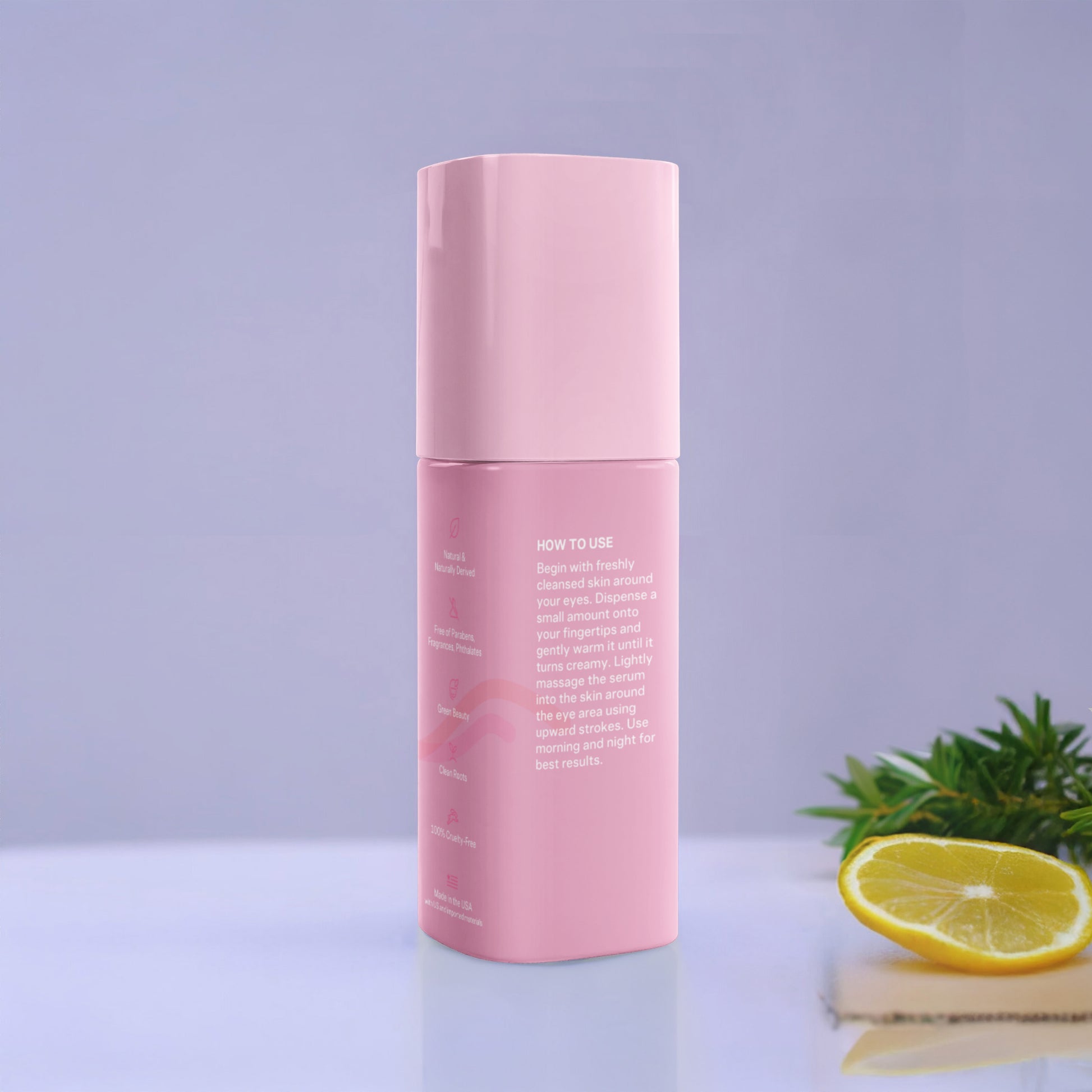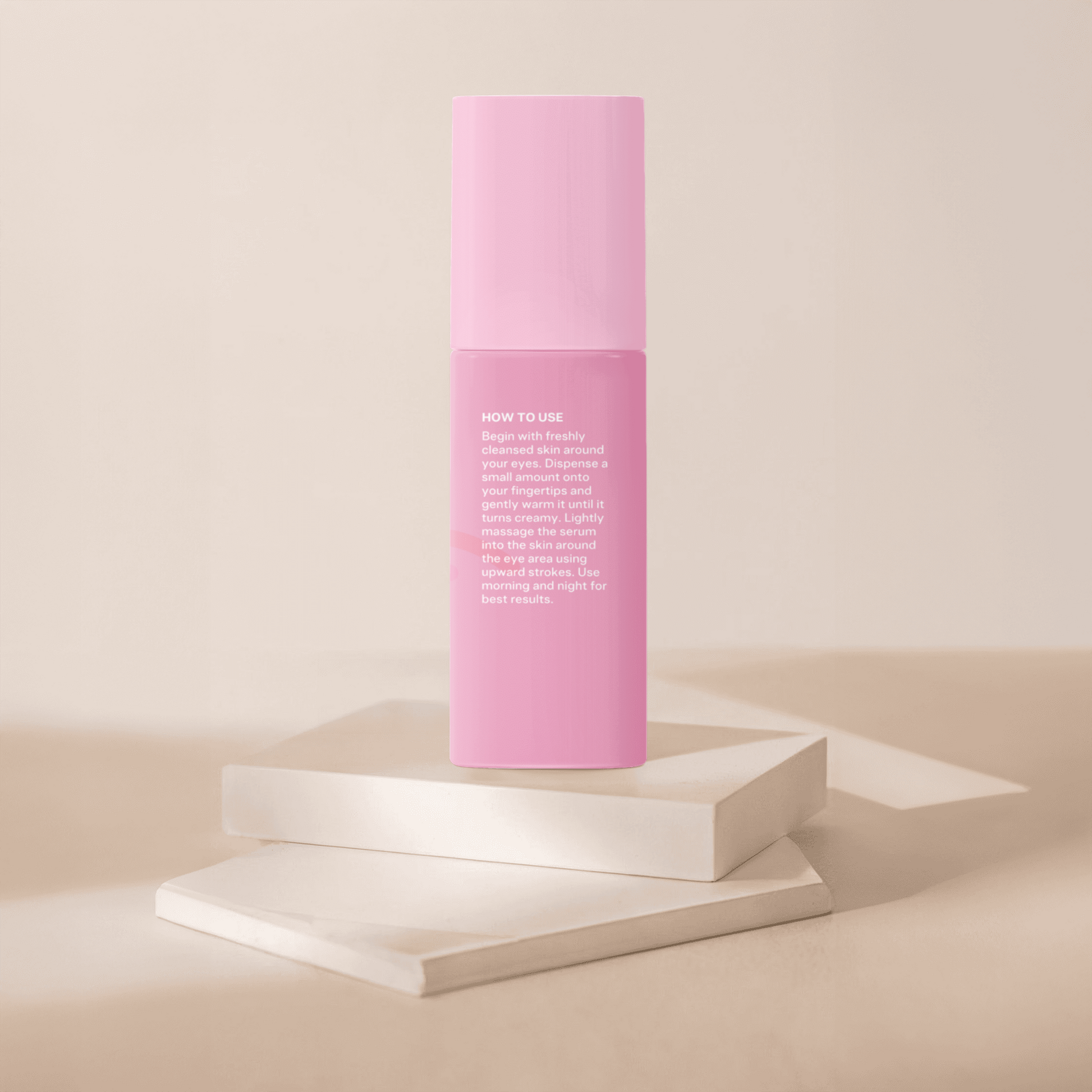 Begin with freshly cleansed skin around your eyes. Dispense a small amount onto your fingertips and gently warm it until it turns creamy. Lightly massage the serum into the skin around the eye area using upward strokes. Use morning and night for best results.